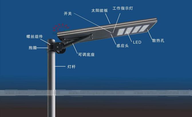 太陽能led路燈燈頭:太陽能燈頭功率決定著太陽能路燈的照明亮度,現(xiàn)在太陽能路燈的燈頭采用的是led光源,使用壽命長,而且節(jié)能環(huán)保。【點擊詳情】2019-01-08